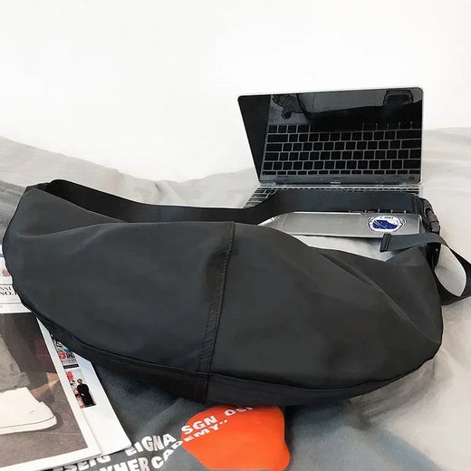 Constructed from fine and ultra-durable nylon, the Crescent Crossbody Bag not only offers comfort in wear but is also built to last. Light and ergonomic, it effortlessly accompanies you throughout even your busiest days. The generously spaced interior features two slip pockets and a zip pocket for optimal organization of your belongings. Whether it's your phone, wallet, charger, iPad, or makeup pouch, there's a place for everything. Our Crescent Crossbody Bag is a true blend of practicality, allowing you to keep your valued items close at hand throughout the day.