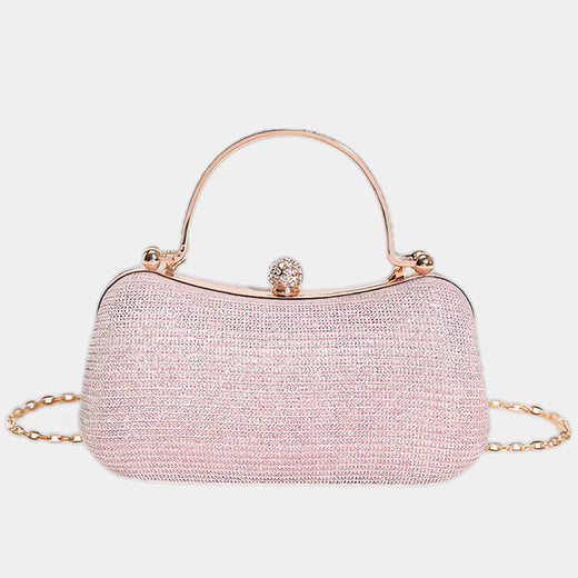 Elevate your chic summer events with our Mini Blue Crossbody Bag, an essential accessory for any elegant occasion. This crossbody bag is a dazzling piece of jewelry crafted to complement your evening attire with an irresistible touch of glamour. Its elongated and rounded shape, embellished with sparkling rhinestones, is designed to capture all eyes. The rigid body of this handbag ensures a flawless look, while its two golden metal handles, each adorned with rhinestones, add an extra layer of sophistication. A clipped closure, decorated with a fancy round jewel set with rhinestones, tops off the luxurious feel of your ensemble.