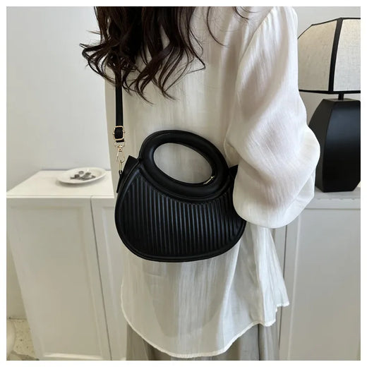 Perfect for year-round use, the Mini Crescent Crossbody Bag adds a touch of retro sophistication to your look. Its rounded, quilted design exudes timeless elegance, complemented by rounded handles and a detachable strap for crossbody or handheld use. This lightweight purse suits various occasions, from work to casual outings and beyond, seamlessly blending with any outfit choice.