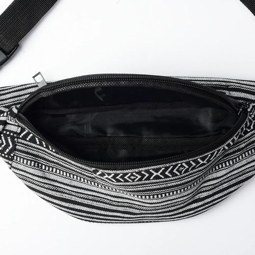 Crafted from sturdy fabric, this Mini Crossbody Bag is offered in classic black and white for a minimalist vibe or in a lively multicolor option for a standout appearance. The lightweight build and premium material ensure durability for everyday use, making it a reliable addition to your accessories collection. The adjustable strap and convenient clip system allow for comfortable wear across the body or on the hip.