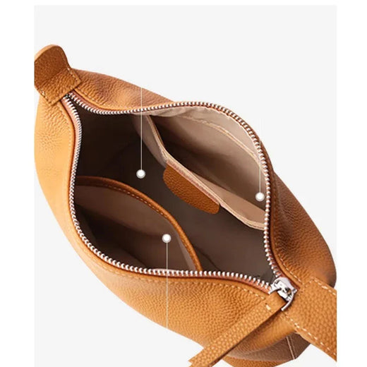 Enhance your fashion essence with our uniquely designed Mini Leather Crossbody Bag, crafted from finely grained cowhide leather. This bag exudes sophistication and elegance, making it the quintessential trendy and modern accessory for your wardrobe. Its supple and soft touch offers a delightful sensory experience, while its minimalist design ensures it remains a versatile and practical handbag. Whatever your daily essentials may be—your phone, wallet, keys, or other small items—this bag accommodates them seamlessly as you go about your day.