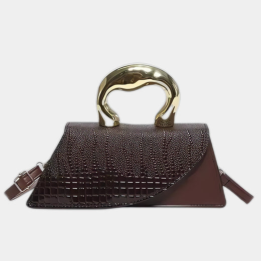 Discover our Red Mini Shoulder Bag, a must-have accessory that brings a touch of glamour and style to any outfit. This stylish handbag features a unique elongated baguette shape with a sophisticated gold metal handle, making it an original fashion statement and the perfect addition to brighten up your wardrobe.