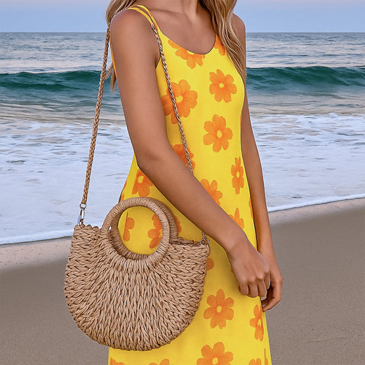 The Wicker Half Moon Bag is a versatile accessory that blends contemporary style with vintage charm. Crafted from premium natural wicker, this half-moon-shaped purse exudes elegance and durability. The intricate weaving and artisanal detailing set this bag apart, making it a standout piece in any crowd. Designed with a secure top closure and a lined interior, this bag combines fashion and function seamlessly.